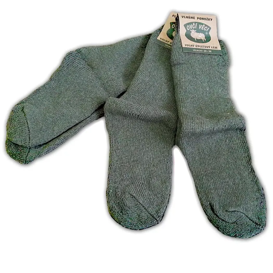 Teplé ponožky z kvalitní ovčí vlny v zelené barvě v sadě po třech párech do lesa, na turistiku i rybaření.