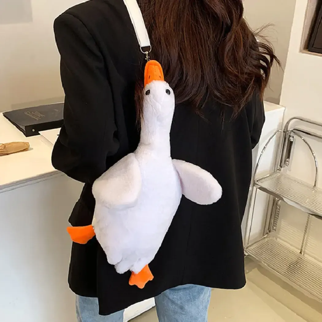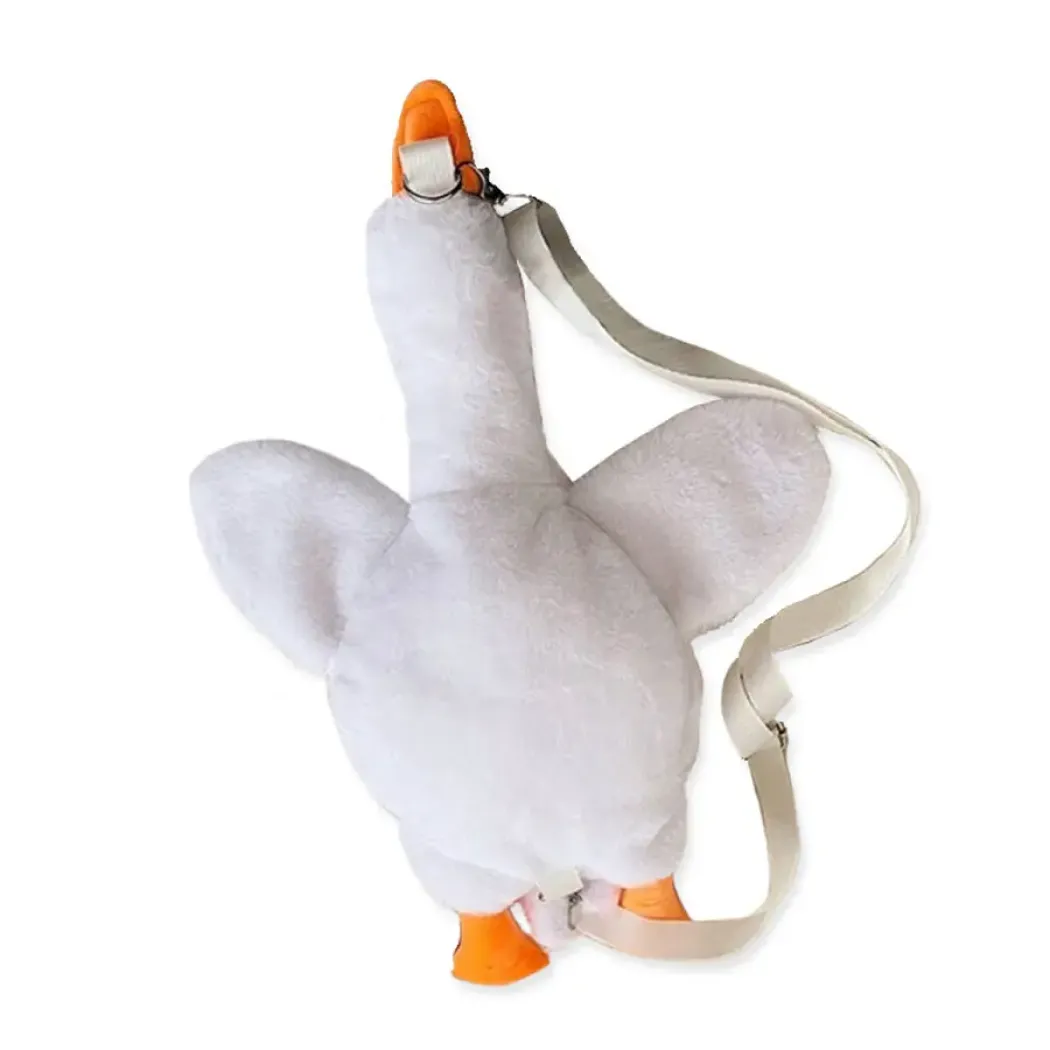 Roztomilá plyšová husa je batůžek nebo kabelka v jednom. Tato mimořádně příjemná a měkká plyšová taška je vyrobena z kvalitního materiálu, který je nejen odolný, ale také nesmírně hebký na dotek., což z ní dělá ideálního společníka především na cestách, kdy je možné ji využít jako příjemný polštářek, batůžek nebo jako tašku s úložným prostorem. Batoh má zapínání na zip a nastavitelné popruhy.