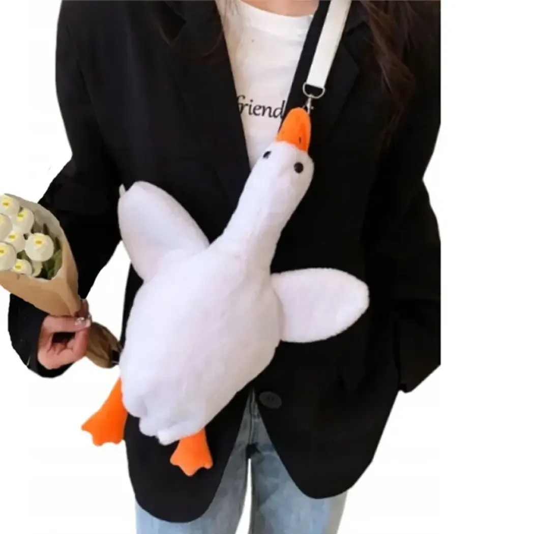 Roztomilá plyšová husa je polštářek, kabelka nebo batůžek v jednom. Tato mimořádně příjemná a měkká plyšová taška je vyrobena z kvalitního materiálu, který je nejen odolný, ale také nesmírně hebký na dotek. Husa měří 45 cm na délku, což z ní dělá ideálního společníka především na cestách, kdy je možné ji využít jako příjemný polštářek, batůžek nebo jako tašku s úložným prostorem. Batoh má zapínání na zip a nastavitelné popruhy.