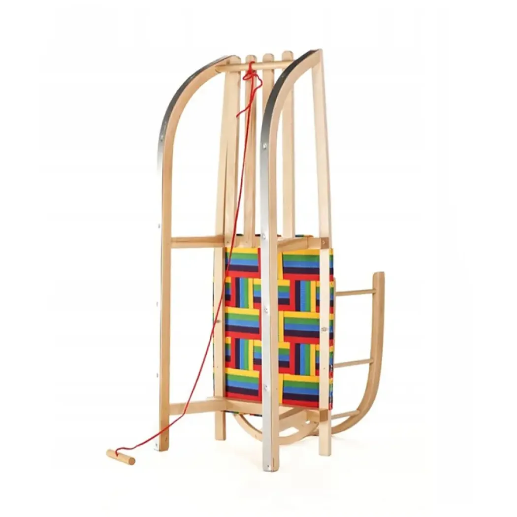 Tradiční dětské dřevěné sáňky z kvalitního bukového dřeva určené pro rekreační sáňkování. Skluznice je podbita kovovým pásem pro lepší klouzání. Pro pohodlné opření mají sáňky v zadní části opěrku. Tyto sáňky vynikají svou odolností, robustní konstrukcí a precizním zpracováním.