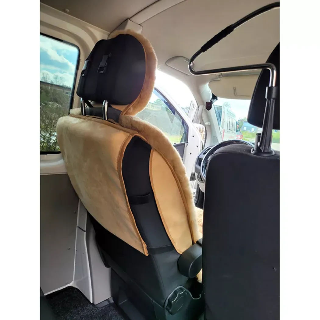 Sedák do auta z ovčí kožešiny je vyroben z kvalitní ovčí kůže, která má výborné termoregulační vlastnosti. V zimě prohřívá a v létě chladí. Sedák z ovčí kůže lze upevnit a přizpůsobit na všechny druhy jednosedadlových sedaček v automobilu. V dolní části a zezadu má nastavitelné gumové popruhy a přesky na uchycení za opěrku a okolo sedadla, takže jeho uchycení je velmi jednoduché a přizpůsobitelné jakékoliv autosedačce. Kůže s ovčí vlnou je prodloužená až na opěrku hlav viz. obrázek.
