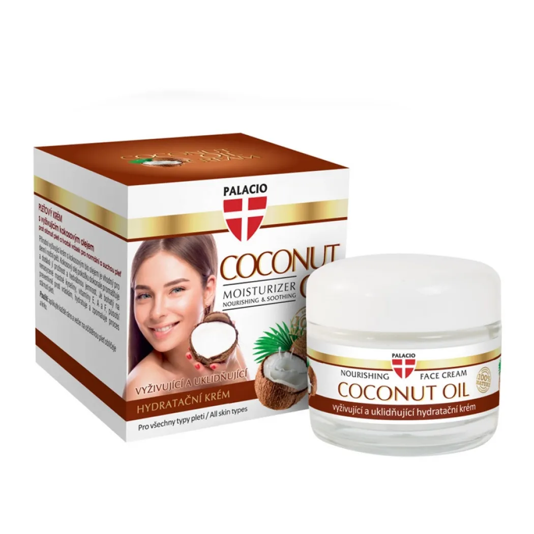 Pleťový krém s vyživujícím kokosovým olejem proti stárnutí pleti a tvorbě vrásek pro normální a suchou pleť. Přírodní vyživující krém s kokosovým bio olejem je vhodný pro denní i noční péči. Kokosový olej pokožku dokonale promašťuje a dodává jí pružnost a hedvábnou jemnost. Je bohatý na nenasycené mastné kyseliny, vitamíny E, A a F, působí preventivně proti vráskám, hydratuje a zpomaluje proces stárnutí pleti.