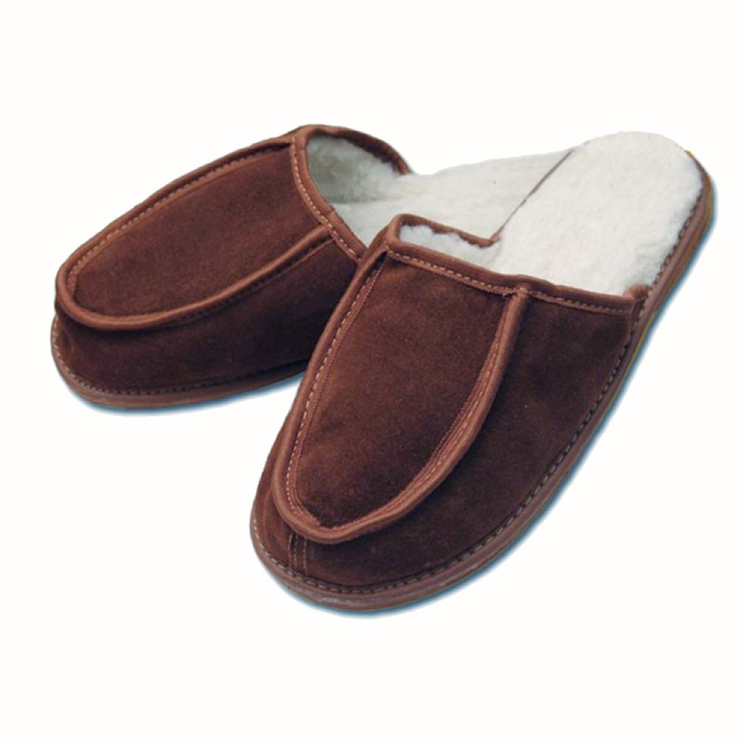 Stylové a pohodlné pánské pantofle z přírodní semišové kůže v hnědé barvě, zateplené hebkou ovčí vlnou pro maximální komfort. Semišový svršek elegantně kontrastuje se světlou vlnou, která udržuje teplo a přirozeně dýchá. Pryžová podrážka s tlumícím efektem a ortopedickým klenutím poskytuje podporu i při dlouhodobém nošení. Pantofle jsou navrženy tak, aby vyhovovaly i ženám s vysokým nártem nebo problémy, jako jsou výrůstky či kuří oka.