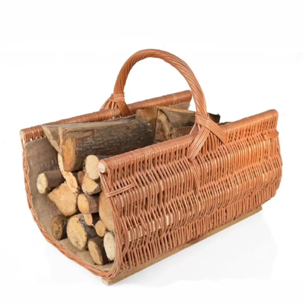 Proutěný koš na dřevo v obloukovém tvaru ke krbu je stylovým a odpovídajícím doplňkem domácího krbu nebo kamen. Přírodní materiál a přítomnost proutěného dřeva vytváří jedinečné, romantické duo. Pevná rukojeť a pevná konstrukce s dřevěnou výztuhou zaručují spolehlivost celé konstrukce. Pro výrobu koše byly použity pouze kvalitní přírodní suroviny. Uvnitř je košík ozdobený hustou jutovou tkaninou proti propadávání třísek.